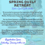 Spring Quilt Retreat: Join us for an amazing weekend, with free classes (TBA), Lectures, Demos & More. Plus prizes, gifts, and Show and Share each day.